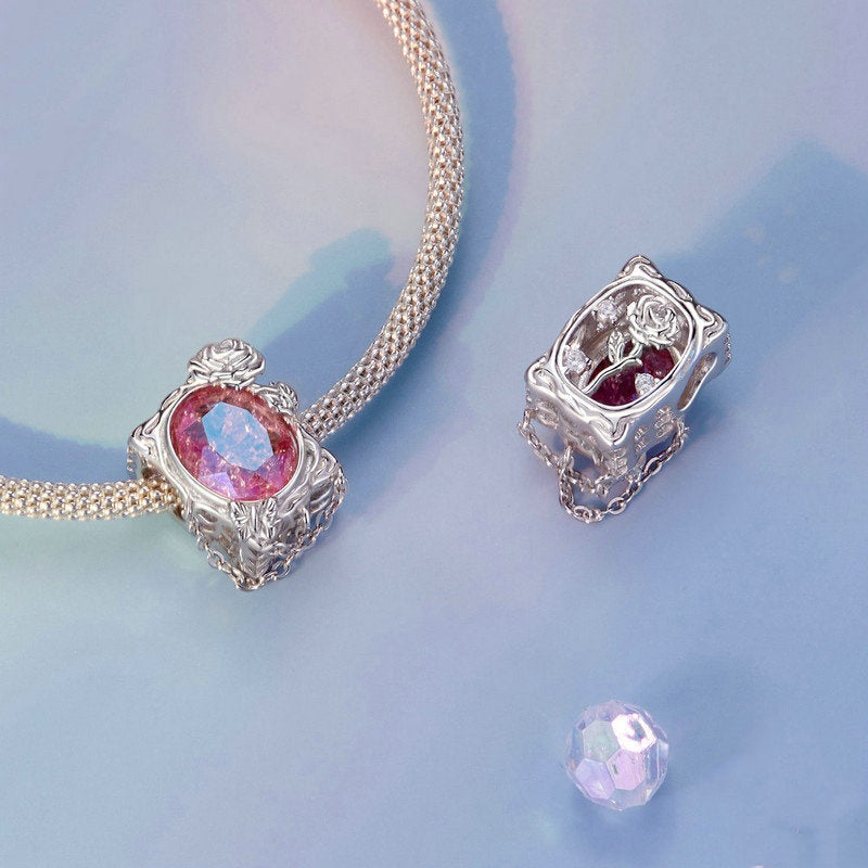 Jzora Noble and Elegant Pink Fading Oil Painting Rose Sterling Silver Charm