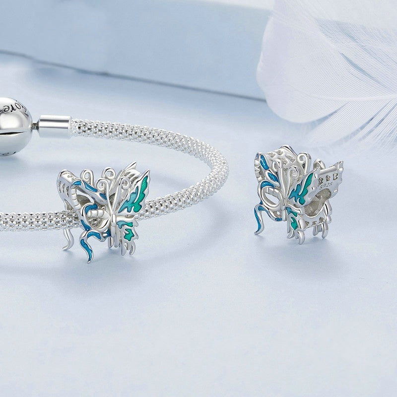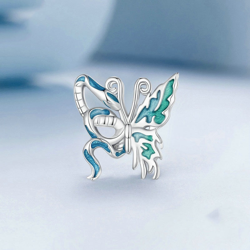 Jzora Personalised Snake Butterfly Asymmetric Sterling Silver Charm