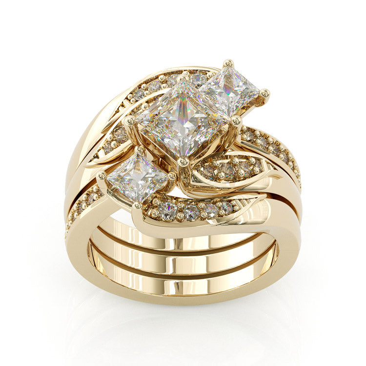 Jzora princess cut Gold vintage Engagement Wedding ring 3pcs Bridal Set