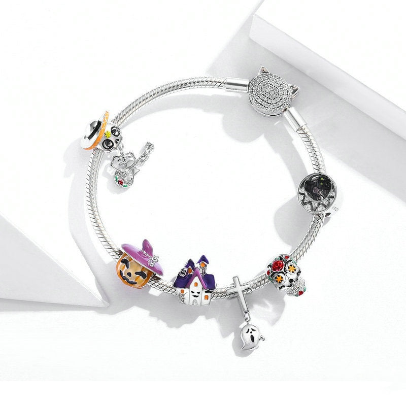 Jzora Purple Halloween Magic Hut Haunted House Sterling Silver Charm