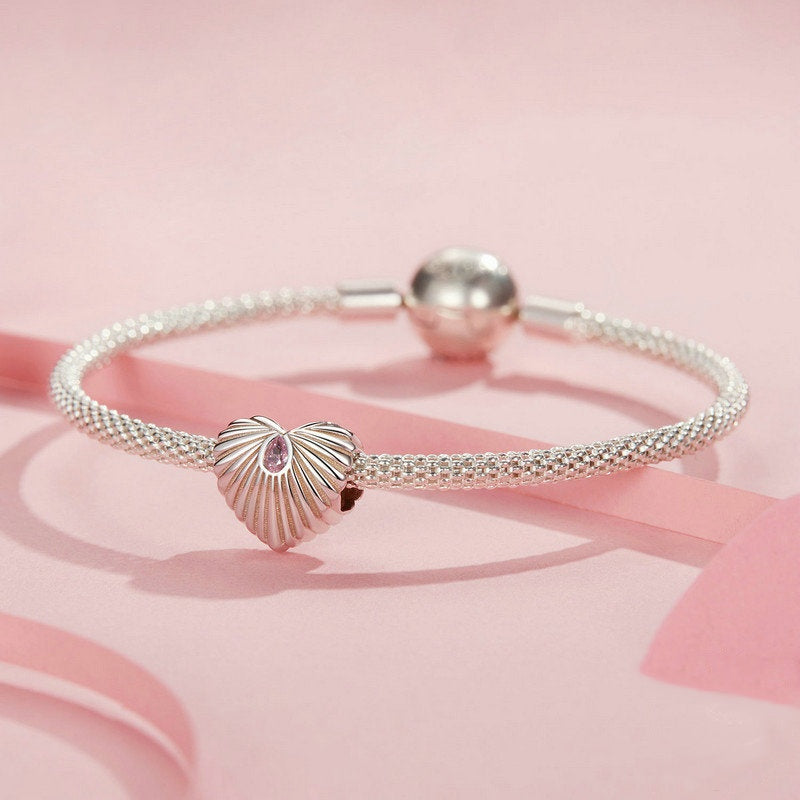 Jzora Romantic Pink Striped Heart Sterling Silver Charm