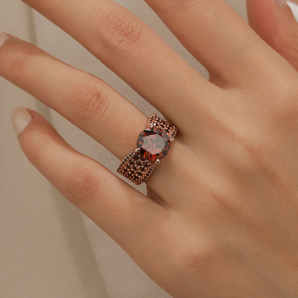 Jzora Round Cut D Coffee Diamond Sterling Silver Engagement Ring