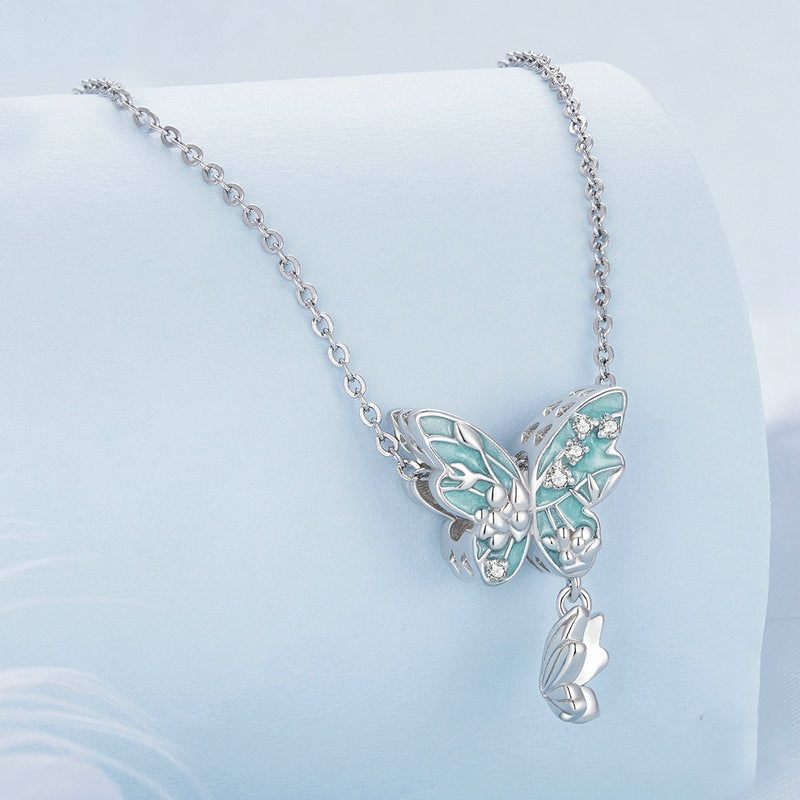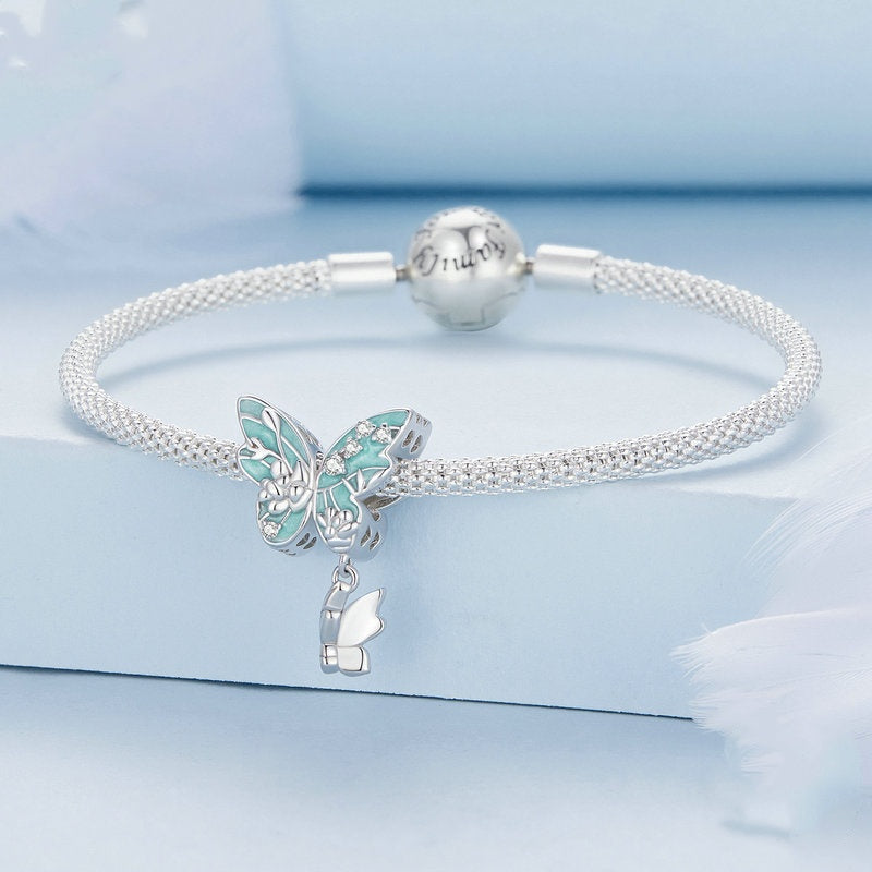 Jzora Spring Green Flower Butterfly Sterling Silver Charm