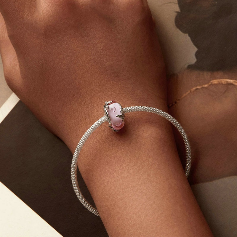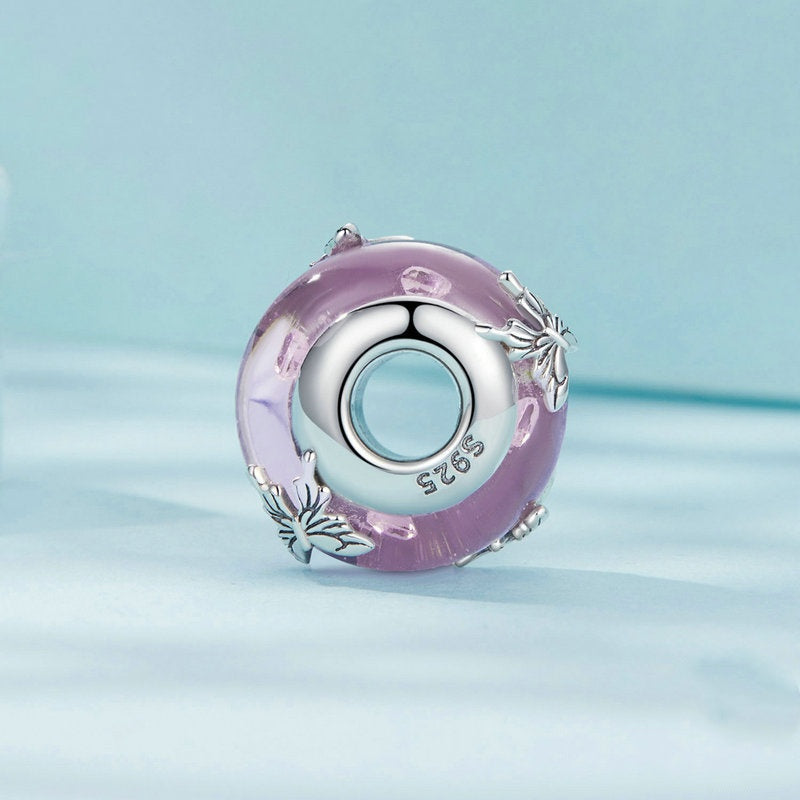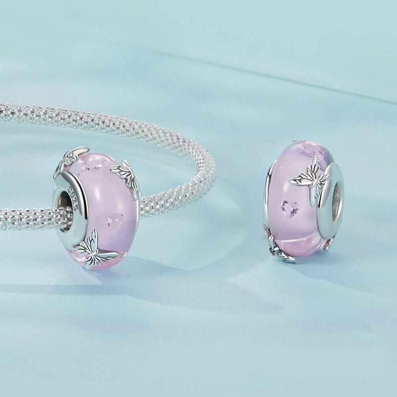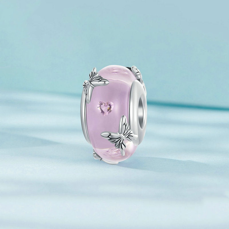 Jzora Sweet Pink Butterfly Glass Sterling Silver Charm