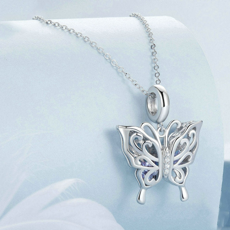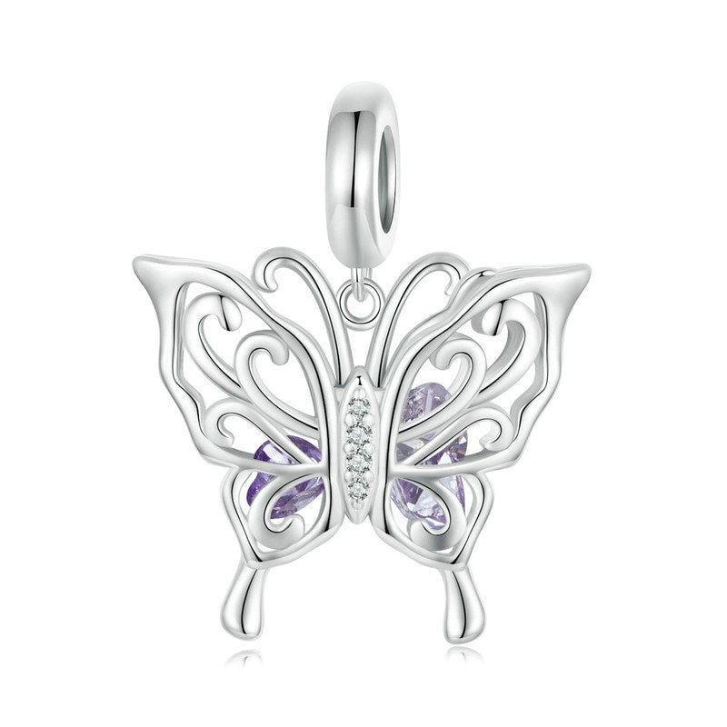 Jzora Tanzanite Vintage Hollow Butterfly Sterling Silver Charm