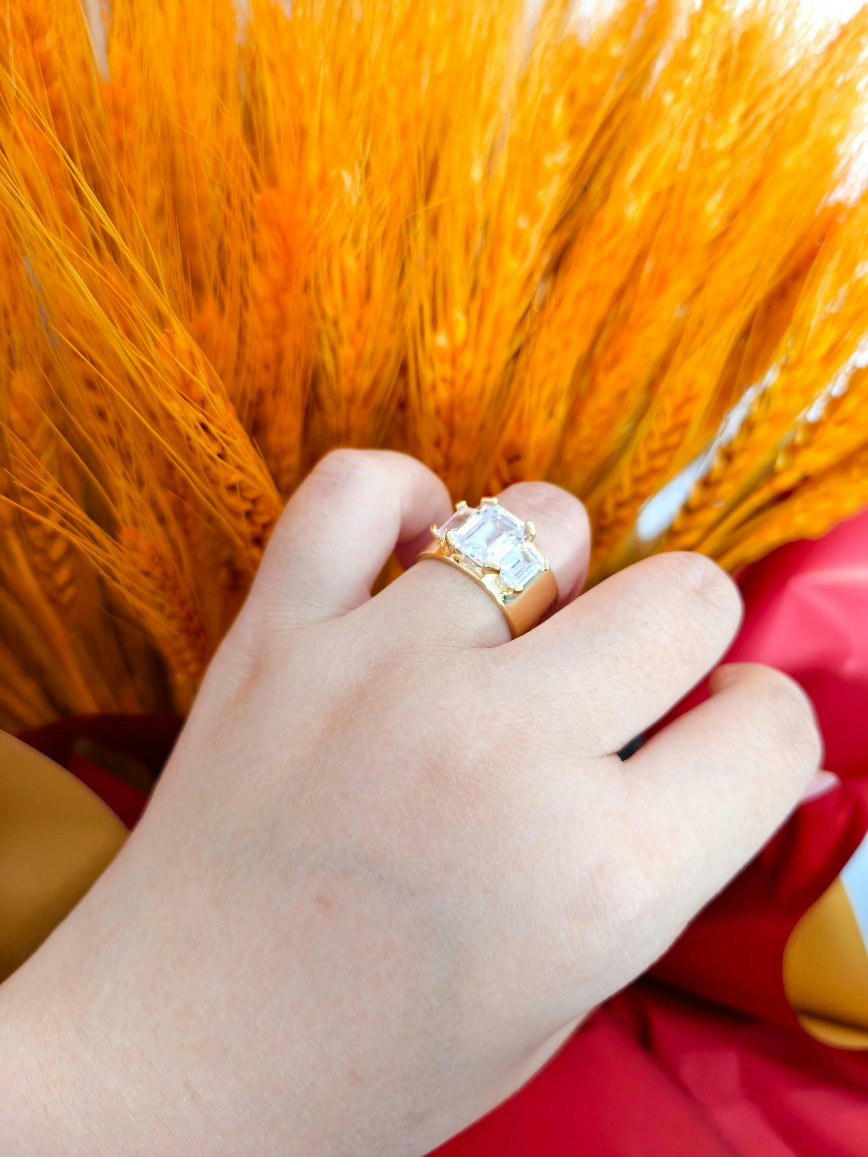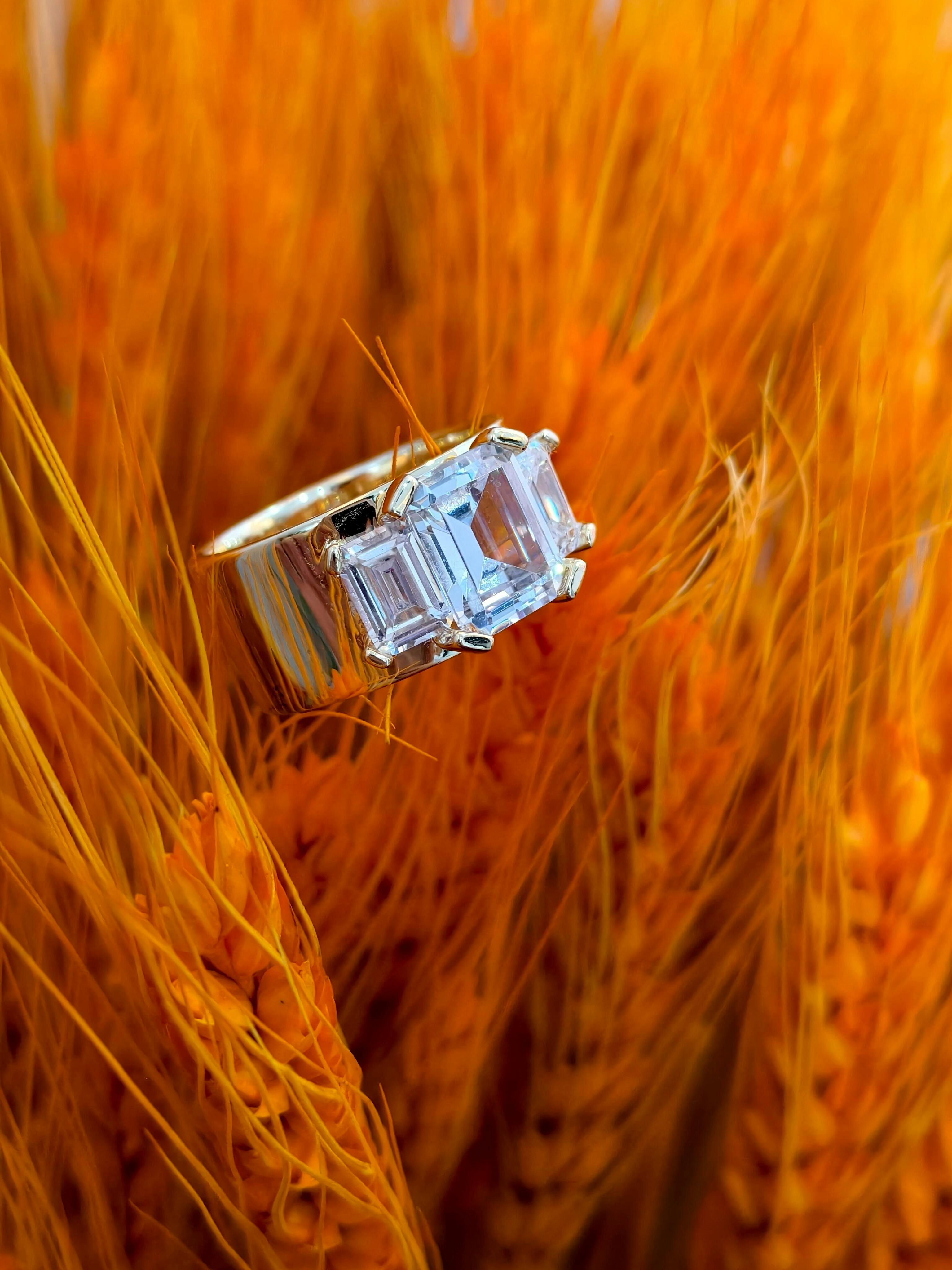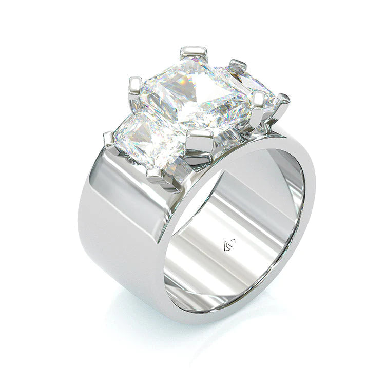 Jzora three stone radiant cut diamond wedding sterling silver wedding ring