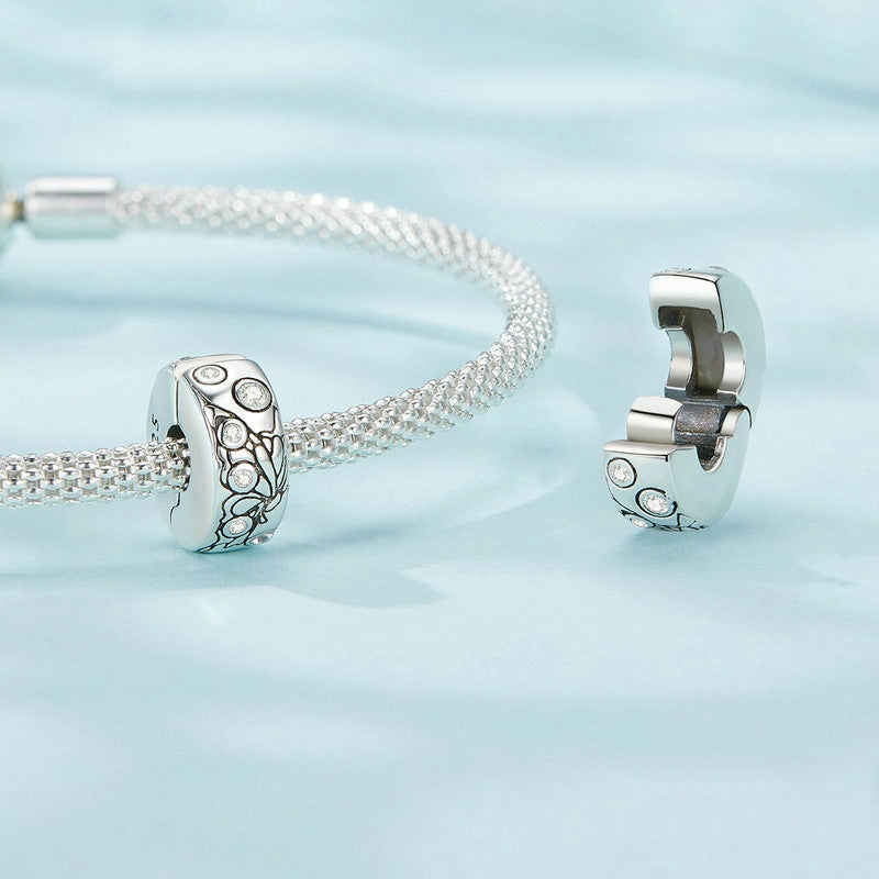 Jzora Vintage Fashion Engraved Butterfly Positioning Clasp Sterling Silver Charm
