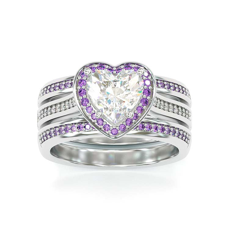 Jzora Vintage Heart Cut Amethyse Halo Handmade Created Diamond Sterling Silver Wedding Ring